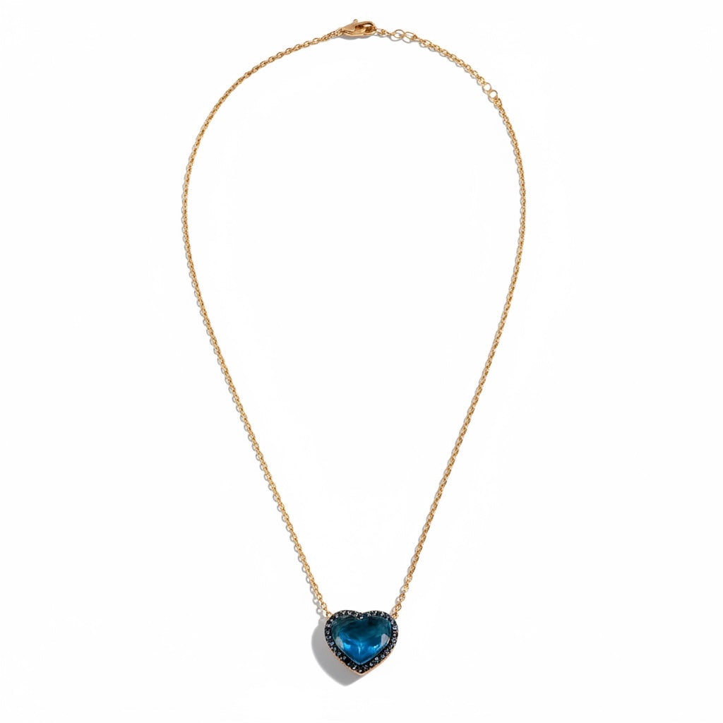 Titanik’in efsanevi mavi kalbinden ilham alınarak tasarlanan bu özel kolye, 925 ayar gümüş üzerine altın kaplama olarak el işçiliğiyle üretilmiştir. Merkezinde yer alan doğal mavi zirkon taşı, okyanusun büyüleyici derinliğini ve zamansız sevgiyi temsil eder.